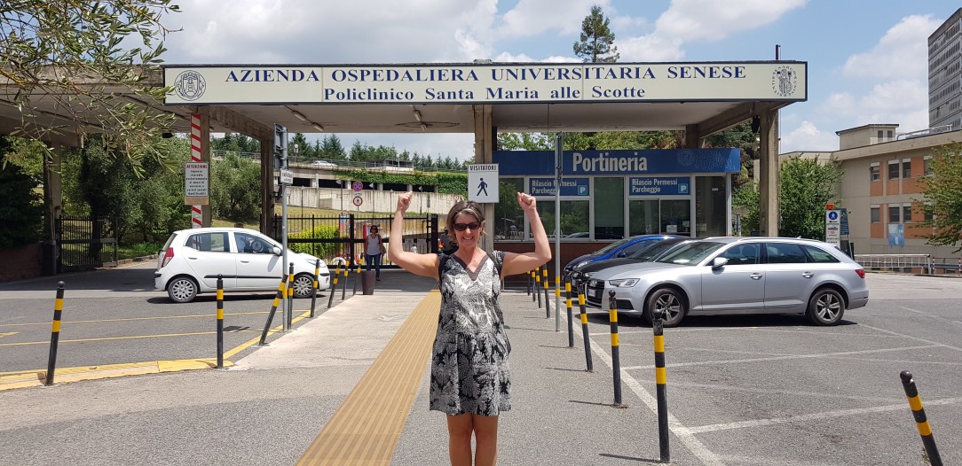 We left Pompeii and headed North into what people say is the most beautiful part of Italy, Tuscany. We have covered many parts of France but very little of Italy and friends have always said to us that we would love it and how right they were. Tuscany is like looking at a Masters painting, the scenery takes your breathe away and the villages are truly stunning. We stayed in a great location near Sienna, right in the forest surrounded by trees and plenty of shade and although the temperature was in the mid 30 degrees, we were coping quite well. As there was so much to explore in the area and the small winding roads were not Motorhome friendly we did get to hire a car for a week and it was just over the price of a day’s hire, that the tight fitting jean Italian in Pompeii quoted us.! To collect the car we needed to get two buses, one into Sienna and then change to another to take us out into the suburbs to collect the car. The great thing was the bus came right into the campsite to collect us and dropped us into the centre of Siena, easy ! The next bus we needed, a number 05 wasn’t so easy to locate. At last, after a kind Italian lady told us where it stopped, we waited and duly got on the bus only to find that it was going in completely the wrong direction ! We thought we may as well do the whole route and knew we would eventually get to where we needed to go. It was great people watching, a bus full of older ladies, laden down with their shopping, I did wonder where all the men were. We saw the suburbs of Siena, returned to the centre of Sienna where we had got on the bus and then at last we were heading in the right direction and with the wonder of google maps we got off at the right place and collected our little Lancia sewing machine. I must say I love these little cars, perfect size for 2 humans and a dog and a real treat after driving the Motorhome. What the car also allowed us to do was get my ear sorted out which had been giving me problems since Spain, all of 4 months ago. We first visited the pharmacy in the village and after telling them I needed to see a Doctor they drew me a map of the house that the Doctor lived in. When we eventually found it, I said to David, I am not going in there ! The shutters were falling off, it looked as if the property was derelict. I had visions of coming out with my ear worse than when I went in. We then popped into the small Tourist Office in the village of Sovicille and the young woman said, no, no, no, you do not go to the village Doctor he is for the grandfathers of the village and everything takes soooo long ! Go to the emergency department of the hospital in Sienna. We thought that was a bit drastic but after leaving it for another day, we decided that we had no option. We found the hospital and where we needed to go and gingerly we went into what we know as A&E. We had visions of a 4-5 hour wait with 50 other people but as we walked in there were 3 people waiting. We explained the problem and were told to wait, we were then taken into the emergency area and then finally escorted to what must have been the non emergency area to see a Doctor. I cannot express how wonderful the service was, the young Italian who was escorting everyone into the rooms, making us laugh with his English and keeping everyone in the room entertained. The young Doctor who I saw finally syringed my ear and I could have kissed him. (So could David I think will all my moaning I had given him over my ear !) 90 minutes after arriving, we were back in the car.