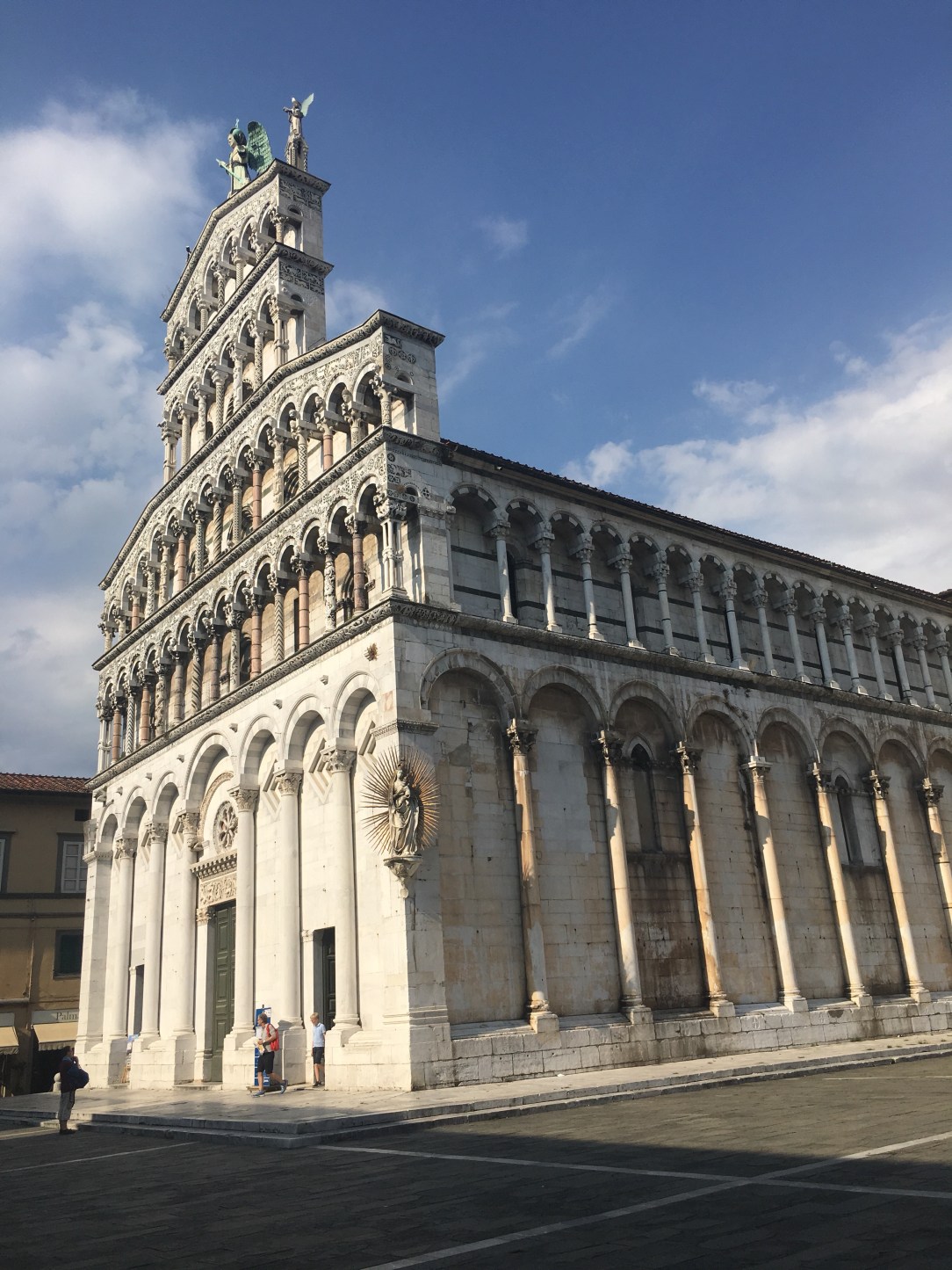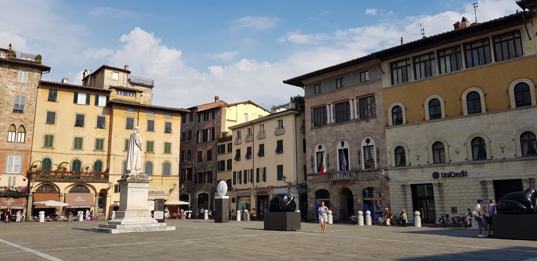 We continued North on the west side of Italy with a destination of Lucca. Our friends Nicola & her husband Phil recommended us to visit after they had been there in May and as Nicola knows me so well, I knew it was a place that we could not miss. We stayed once again just outside, a 30 minute walk in to the centre. We decided to walk in later in the day, leaving Chloe snoozing in the van. In 1805 Lucca was conquered by Napoleon, who then installed his sister Elisa Bonaparte as ‘Princess of Lucca’. The walls encircling the old town remain intact and once they lost their military importance they became a pedestrian promenade. Lucca is also the birthplace of Puccini born in 1858 and composing the great ‘La Boheme’, ‘Tosha’ and ‘Madame Butterfly’. Now we loved Lucca, it had a great feel about it and we both said that it was the best of all the towns in Tuscany that we had visited. It wasn’t so overcrowded, it had the most wonderful of shops (me of course loving this part the most !) and I had to refrain myself, as I could left laden with bags of things that I don’t really need. We enjoyed a lovely meal and David was a little gutted because the next evening Roger Waters was playing in the town. We tried to get tickets but they were an extortionate price and therefore the next day we departed. Before we departed the campsite I owed the owners €5. The cost for staying the night was €25 but when we arrived I did not have the correct money and for some strange reason they said they did not have change. Which I thought was rather odd as you could only pay cash (Italians love cash) and I am sure some people gave then the correct money. Anyway, I said I would pay the next day. As we go to leave I forgot to get the €5 and went up to the office and a different Italian this time and grumpy, said he had no change. So I said, what should I do, he shrugged his shoulders said you will have to walk to the village to get change and turned his back on me. I was hot enough with the heat, menopause onset, and this was the tipping point for me boiling over. I went back to the van, explained to David, I thought I was going to have a seizure I was so angry. We tried to find coins to make up the €5 and I have a purse with all very small coins, we counted them out but we were still short. Time ticking and we wanted to leave I stormed off walking into the village. Faith was resorted for the Italian race in the bakers with two lovely ladies and I did find an amazing butchers. On my way back I see David sitting in the Motorhome outside the campsite. He said that he had found the last coins we needed, drove up to the exit and said to stroppy Italian ‘we owe you €5, here it is’ and dropped a huge handful of the smallest coin denominations on the counter. At least a small amount of satisfaction and a bad review given to the site, made me feel a little better.