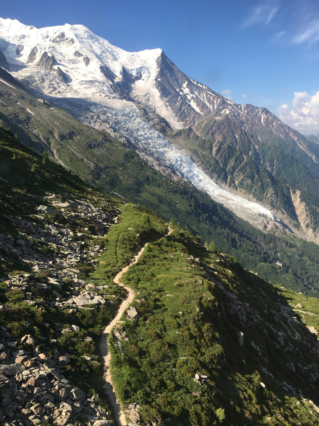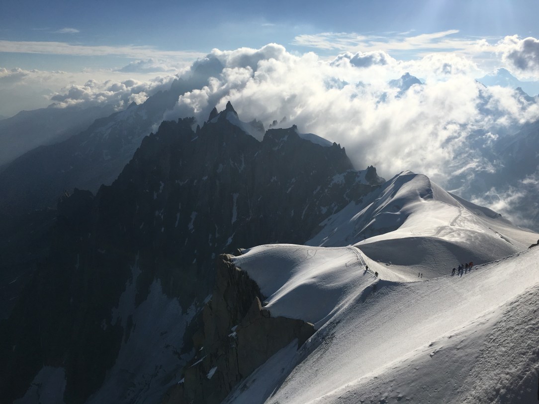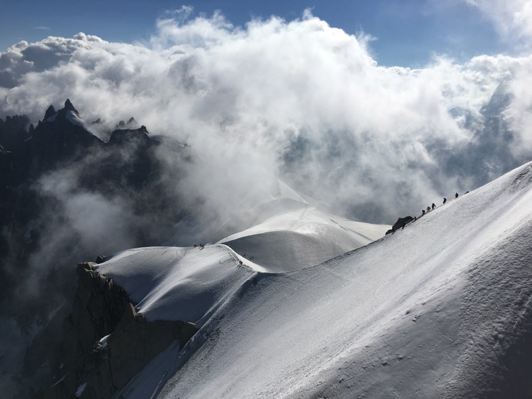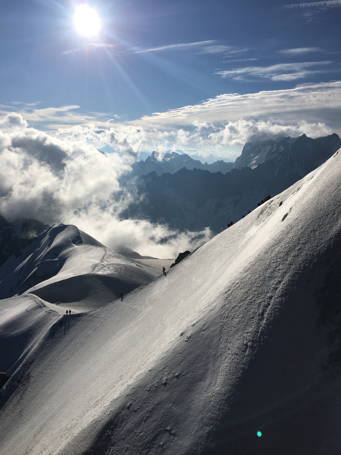 Our destination was a campsite just outside Chamonix, but as we were following our ‘Snooper’ Sat Nav which knows our size and weight of the van, it brought us to a bridge under a railway line that was too tight to get through. Not all that good after all ! The roads in this part of France are very small and very windy and we decided to park for the evening in Chamonix itself, as there are dedicated areas for Motorhomes. Now Chamonix is in it’s self an eye opener. It contains the most fit people we have ever seen in our lives, not an ounce of fat on them, all kitted out in their hiking gear. God, did we feel out of place. Obviously because of where it is, it is busy all year round and the Main Street is filled with hiking shops selling all the gear you would need to climb Mont Blanc. Unfortunately they didn’t sell new bodies which David & I would need and so we just window shopped. It is very beautiful and with the back drop of Mont Blanc you can see why people flock here. It is a sight to behold. After reading up about getting the cable car to the top of Mont Blanc as we were obviously not climbing it, we decided to get the cable car early the next morning to beat the crowds. We set the alarm and arrived at the cable car station for 07.00am. No queues, still all fit climbers with their ropes and clips, snow picks and snow shoes dangling off their rucksacks and David and I wrapped up in our winter clothes as the temperature can be a lot lower at the top of Mont Blanc. We packed into the cable car and we were off. It takes over 10 minutes to reach the first stage, Aiguille Du Midi, we were climbing and climbing and I can’t tell you the excitement, until the cable car suddenly seemed to drop and then climb again. Not sure why but it’s a long way down ! My heart jumped but I tried to remain cool, trying not to embarrass myself in front of the fit crowd. We made it to the first stage and we left the cable car to get the next to the top, another 10 minutes The view from Aiguille Du Midi at 3842M was amazing but when we finally reached the summit at 12,392ft, above the seracs, the Pelerins glacier and the hanging glaciers on the north face of the Aiguille du Midi, the view took our breathe away. It is such the most wonderful sight to see, how lucky were we to be standing there looking out at our most beautiful world. Words cannot describe the beauty. If you are not afraid of heights, try and get here in your lifetime because you will remember it as long as you live. We stayed for 2 hours in all and we did notice due to the altitude that we were slightly light headed and breathless, I bet the fit people weren’t. We had our photos taken in the glass box that overhangs the edge and then descended down the two cable cars to the bottom, just as the queues were beginning to build. For the rest of the day I had the biggest smile on my face, wow what a day to remember.