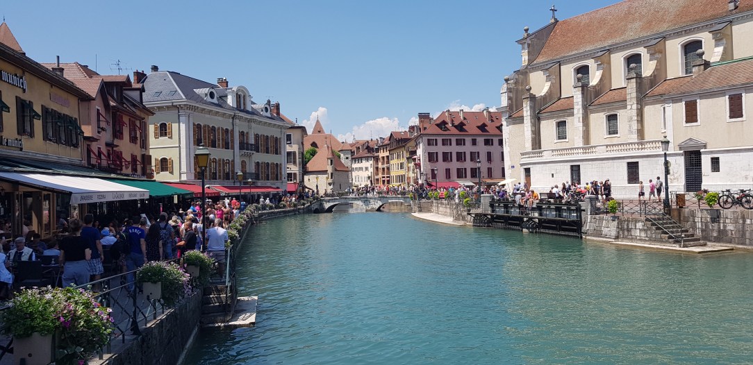 Our next destination was Anncey, the largest city in the Auvergne-Rhône-Alpes region. It lies on the northern tip of Lake Annecy. It is nicknamed the ‘Pearl of the French Alps’ with it’s location between lakes and mountains and sometimes also known as ‘Venice of the Alps’ a tourist representation which comes from the three canals and the river Thiou lying through the old city. It is a tourism paradise with the turquoise lake providing boating, swimming and anything water with the wonderful city to meander in. We stayed at the South end of the lake and spent a couple of nights. However, we timed it completely wrong as the “Tour de France’ was having a rest day in Anncey and it was absolutely heaving. We cycled the hour’s ride into the city along the cycle route and I quite like to meander along at my own pace, but I felt like I was in the Tour de France with cyclists whizzing past and it felt like I was on the M25 in rush hour. Not very pleasant at all. Anncey is stunning and I can fully understand why people descend on this beautiful city and lake for their summer vacations. We have been told that it is busy all year round but it is somewhere on our list to return out of season, so that we can really appreciate the beauty and also to paraglide off the cliff ! Whilst we were staying at the Campsite we met Antoine, his wife Ruth and their daughter who were from Malta. They are such a lovely family and they holiday in the mountains each year in their motorhome, Antoine was saying that there are no mountains in Malta and so that’s why they love them. As they left we were given a packet of traditional biscuits from Malta by Antoine. I wish I had some M&S biscuits to give them in return.