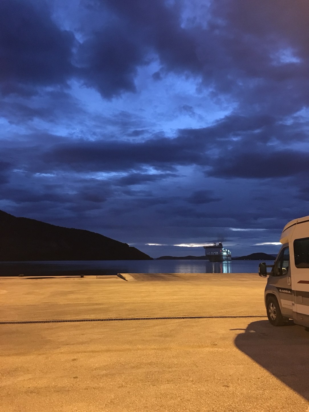 We wild camped for our last two night in Greece in a lovely spot by the sea. We just wanted to be by the sea again, so Chloe could have her last swim and for us to remember the beauty of Greece. Here I fed some stray dogs which bought tears to my eyes on how they ravished the food and I could have bought a litter of kittens back as well. We ate our last Greek meal looking out of the beautiful sea and then headed off to catch our ferry back to Bari Italy at 0.30am.
