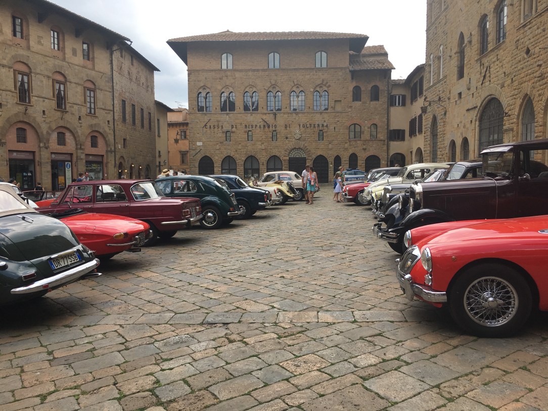 We visited the famous town of San Gimignano, stunning but heaving with tourists (yes I know we are tourists !) and Volterra which with less tourists we loved more. To add to the visit of Volterra, there in the main square were the most beautiful vintage cars that were obviously on a rally. Original Fiat 500, Mercedes and MGs. These beautiful towns are best enjoyed just wandering the small streets that wind their way around and just enjoy turning the corners and seeing the most beautiful of vistas.