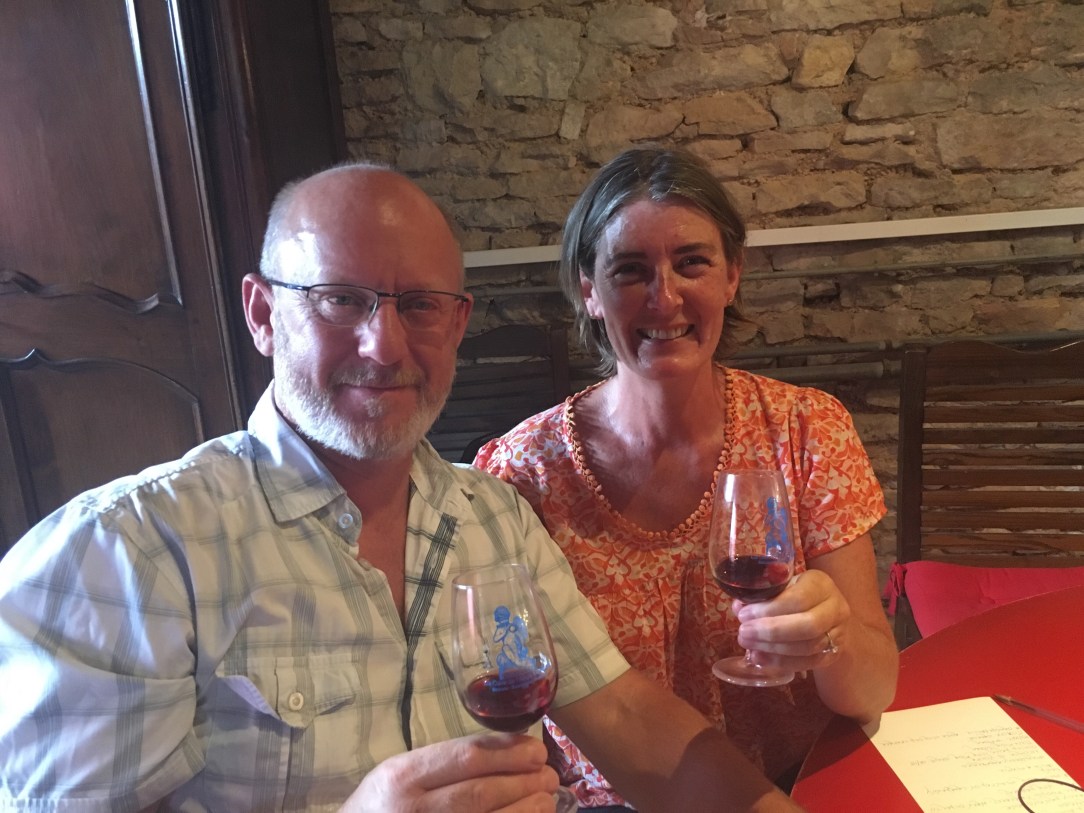 We left our friends and headed South stopping at Aubeterre Sur Dronne. It is officially listed as ‘one of the most beautiful villages in France’ with the underground Monolithic Church of Saint Jean of Aubeterre. I went in, David stayed outside with Chloe (obviously all Churched out !) As I came out David was saying that a group of 6 English people went to go in and was told that they are shutting for lunch for 3 hours and to come back later. Not impressed they walked off saying, that this is the biggest attraction in this small village and they shut for lunch ! Not sure they have been to France before, heaven help them if they ever go to Spain ! We stayed a couple of days and then made our way to our other friends near Duras. Chloe loved it with her friend Tilly, a gorgeous golden labrador especially with the trip to the lake where Chloe went swimming. As always we had the most wonderful time, ate lots of beautiful food, laughed and David & Dennis talked Arsenal.
