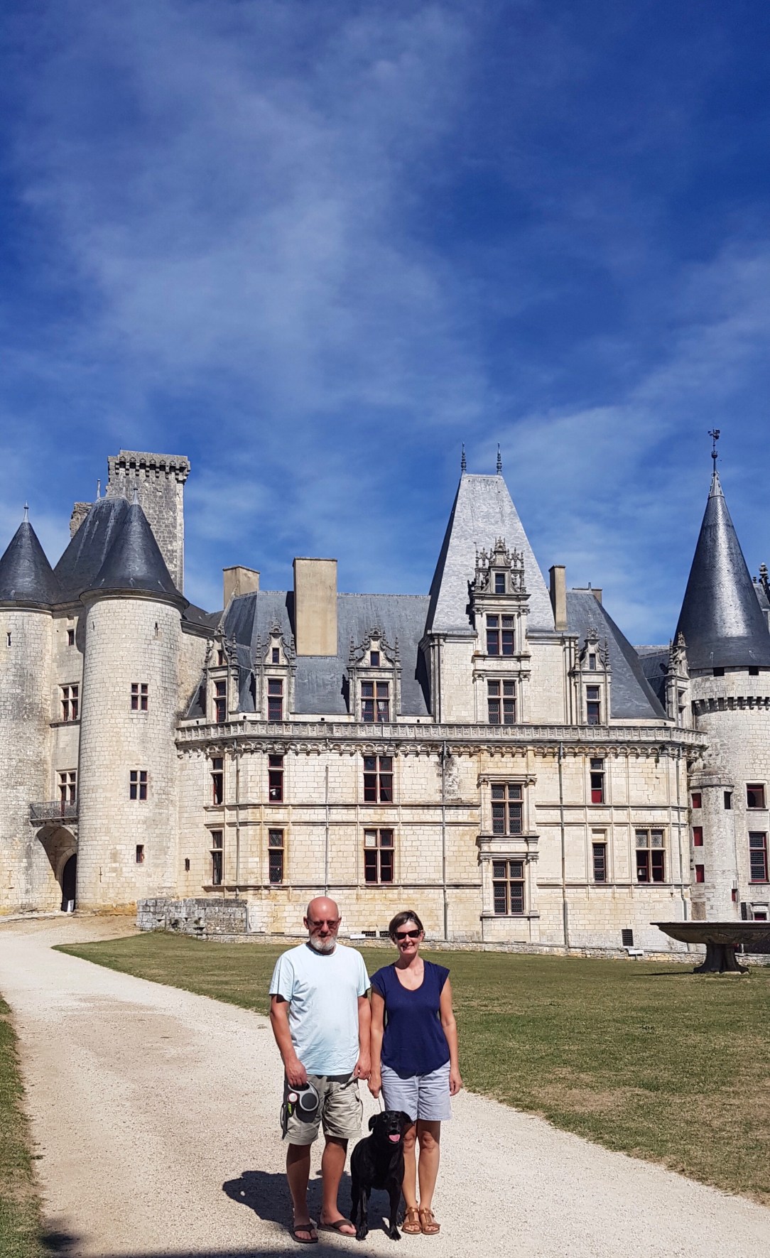 This is quite a well trodden route for us, as we headed to Portugal last year. This time we are going through France, into Northern Spain along the rest of the Northern coast that we never reached last year and down a different route into Portugal. We travel on non toll roads through France, as we don’t have to get anywhere fast. We stopped off at a couple of aires, the free parking areas for Motorhomes in France and then at the weekend stayed with friends near Limoges. We had a lovely weekend with them, David watch Gaz play in his band, something I would loved to have done but my migraine had other ideas. We laid out in the middle of the night covered in blankets, watching the stars. It is pitch black where Debs and Gaz live and with the clear night sky we saw the Milky Way, I felt like Patrick Moore. The next day we visited La Rochefoucauld Chateaux, entrance was all of €2 and we came face to face with the Marquess la Rochefoucauld who still resides at the chateau. She came bowling over to us looking at Chloe and in French (luckily our friends were with us) told us to make sure Chloe did not S**t in her courtyard ! That said, it is well worth a visit and there is the most amazing chocolate shop at the foot of the Chateau which of course we visited and bought some to feed our expanding waistlines.