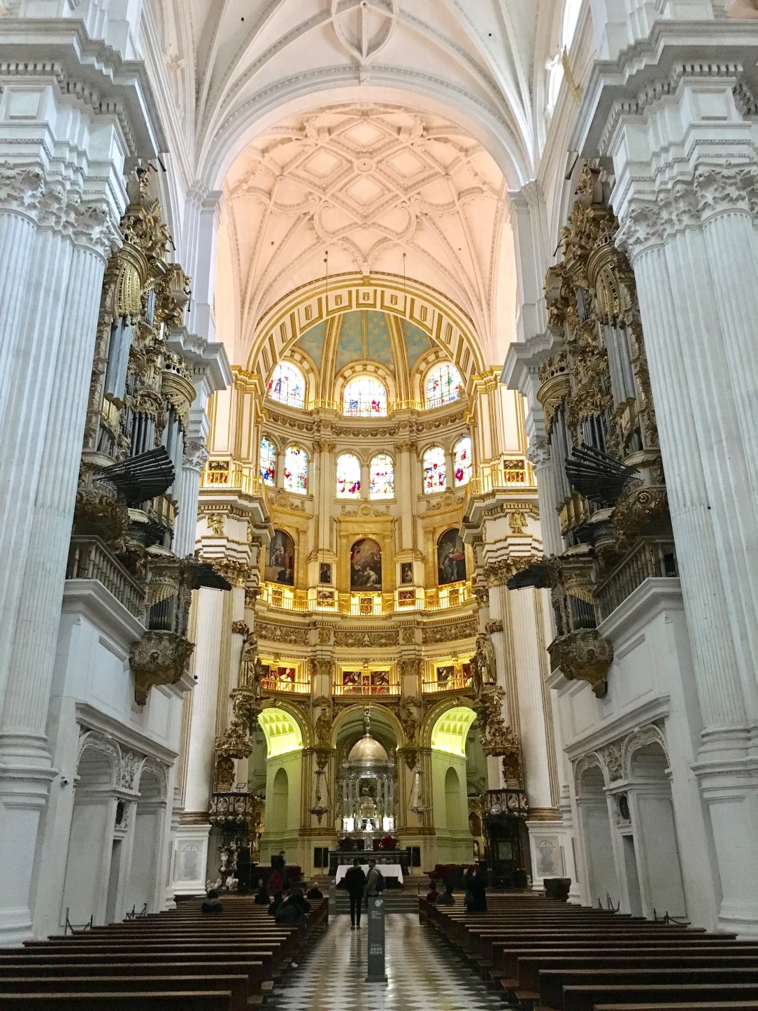Our first day we set off on our bikes, again only because no dogs on buses, in taxis etc. David attached Chloe’s mode of transport to the back of his bike and with me behind we set off for the 30 minute ride into the city centre. I wish I had a Go Pro on my head, because the look on people’s faces as we passed would make a great YouTube video. Chloe’s buggy is obviously very unique in Granada. The other thing with Granada is that they have no places to leave your bikes, mopeds yes, but not bicycles. Obviously, with our only mode of transport being our bikes and Chloe’s buggy to get around, they are precious and so we always worry if they will be there when we get back. In the end and to stop David getting even more stressed we attached them to a lamppost outside the cathedral. David took photos and we hoped they would be there when we returned. First stop was the nearest cafe and two caffe con leche to calm the nerves, before we set off to explore the city with it’s cobbled winding streets. Due to time of year a lot of the restaurants, cafes etc were closed and it must be amazing during the warmer months. It is a great place to wander and loose yourselves. As we climbed the cobbles and heard the soothing sound of the traditional Spanish guitarist, we forgot about the bikes.