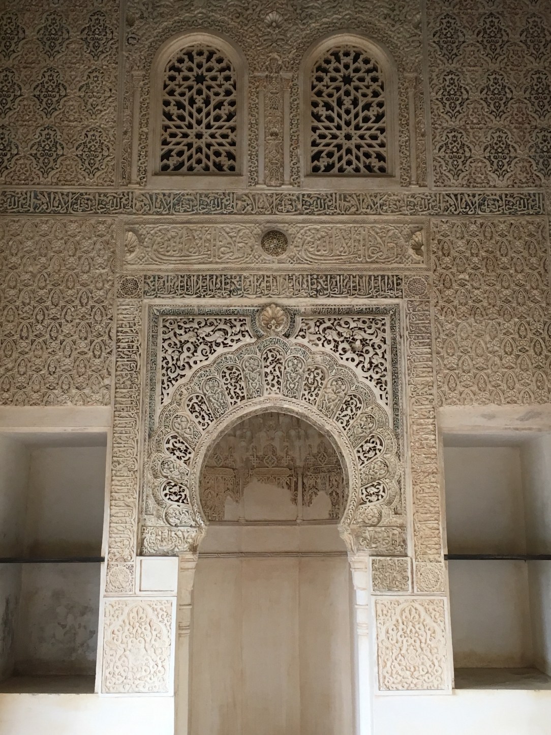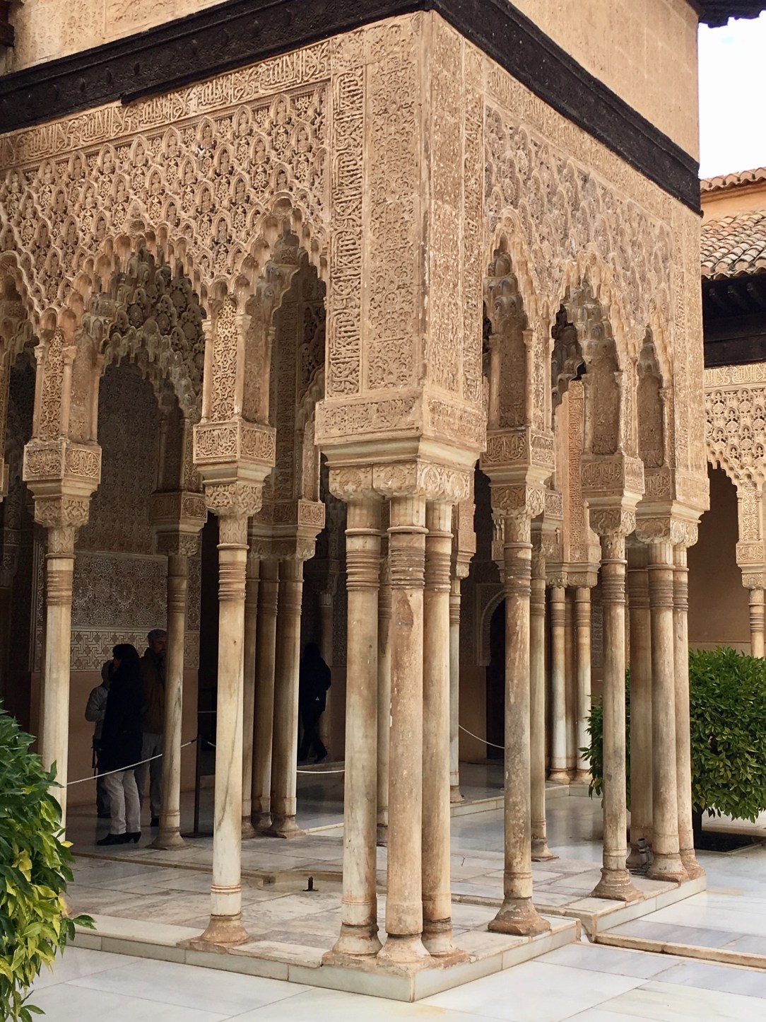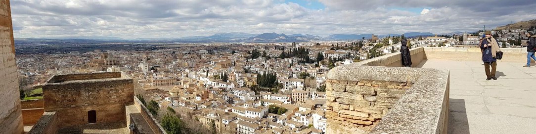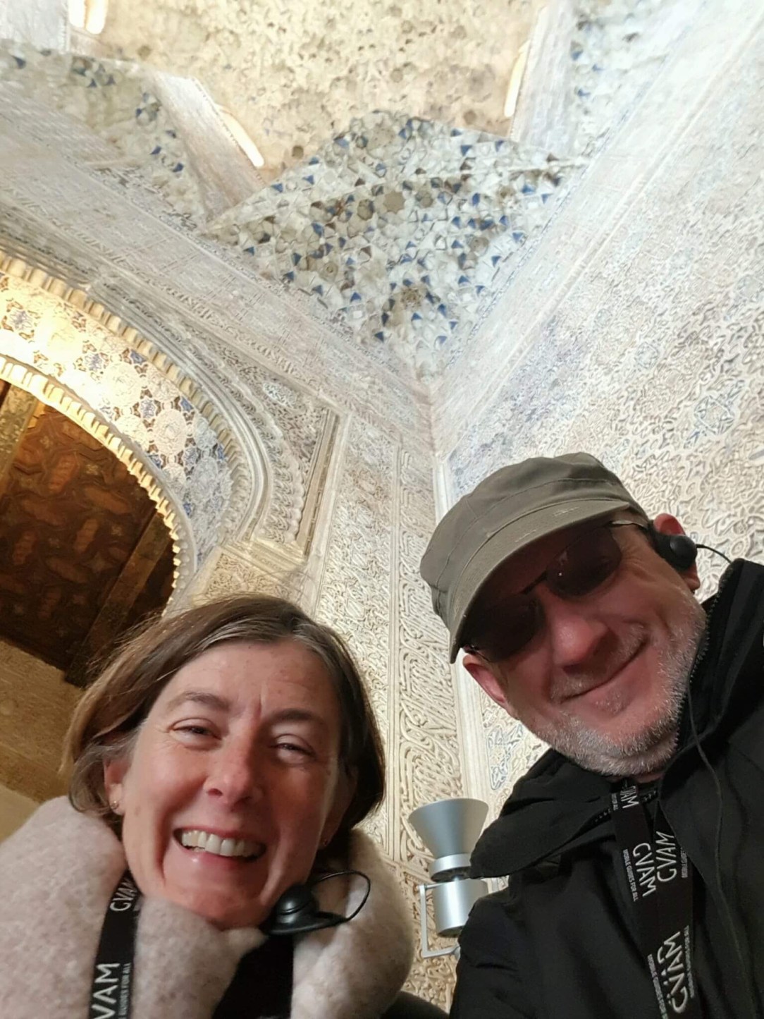 The next day with tickets booked we headed off to Alhambra. Now we had been advised on various forums to purchase your tickets in advance and so the site we are staying at booked them the day before with entrance to The Palace at our allotted time. If you ever visit, book in advance ! It was the coldest day of our ‘Once in a Lifetime’ adventure so far. With 4 layers on, minus my hat as I couldn’t find it. We set off in the taxi leaving Chloe on guard in the van. David even had trousers and his thick coat on ! It is beautiful and we think even more beautiful on a warmer day when it is not so windy. The Palace is one of Spain’s major tourist attractions, exhibiting Islamic architecture. The gardens are planted with oranges, roses and myrtles and there is a dense wood of elms said to have been brought by the Duke of Wellington in 1812. There are fountains and cascades all over the gardens. The detail in the wood carvings and the inlaid work is stunning and it is a place to visit, just on a warmer day in Spring or early Summer !